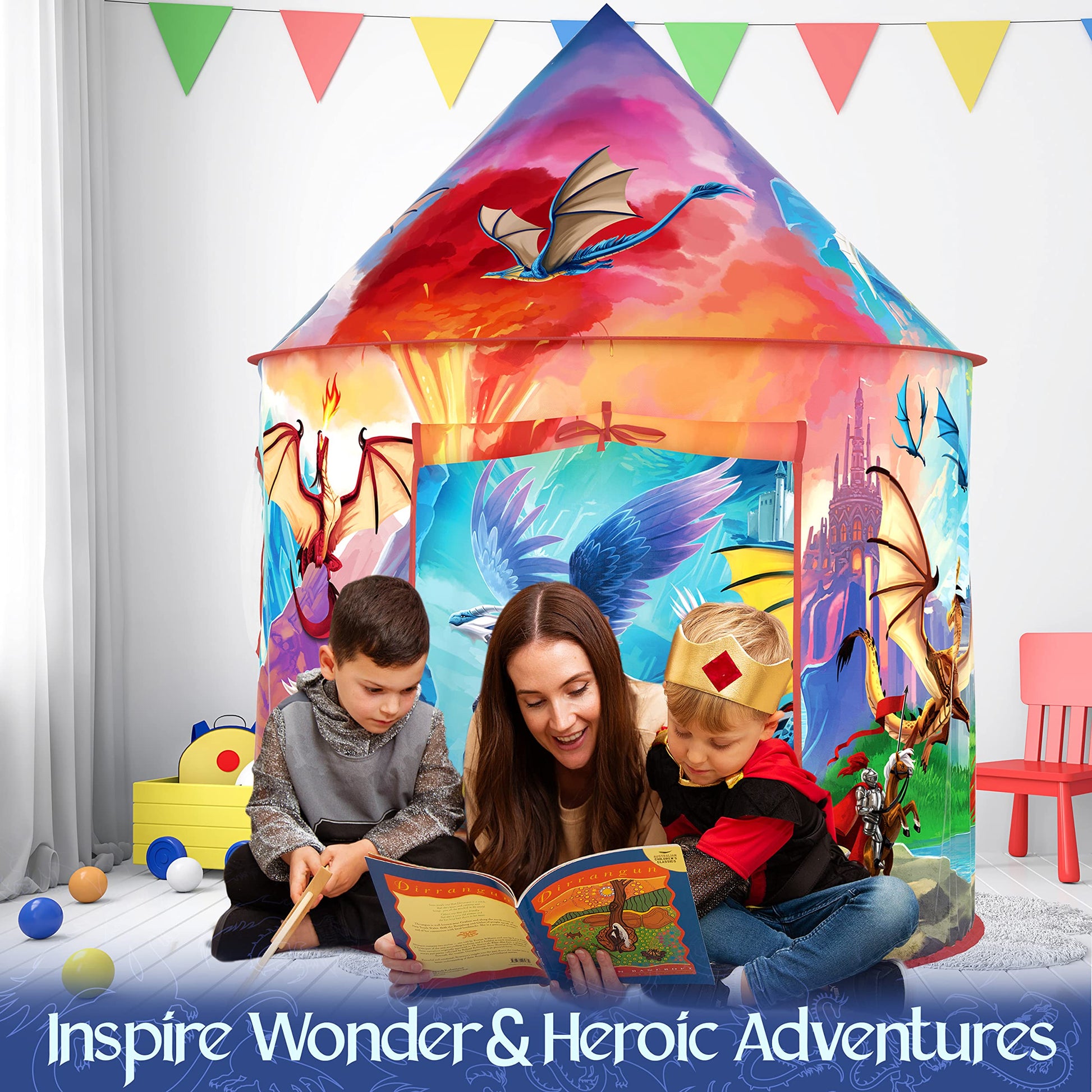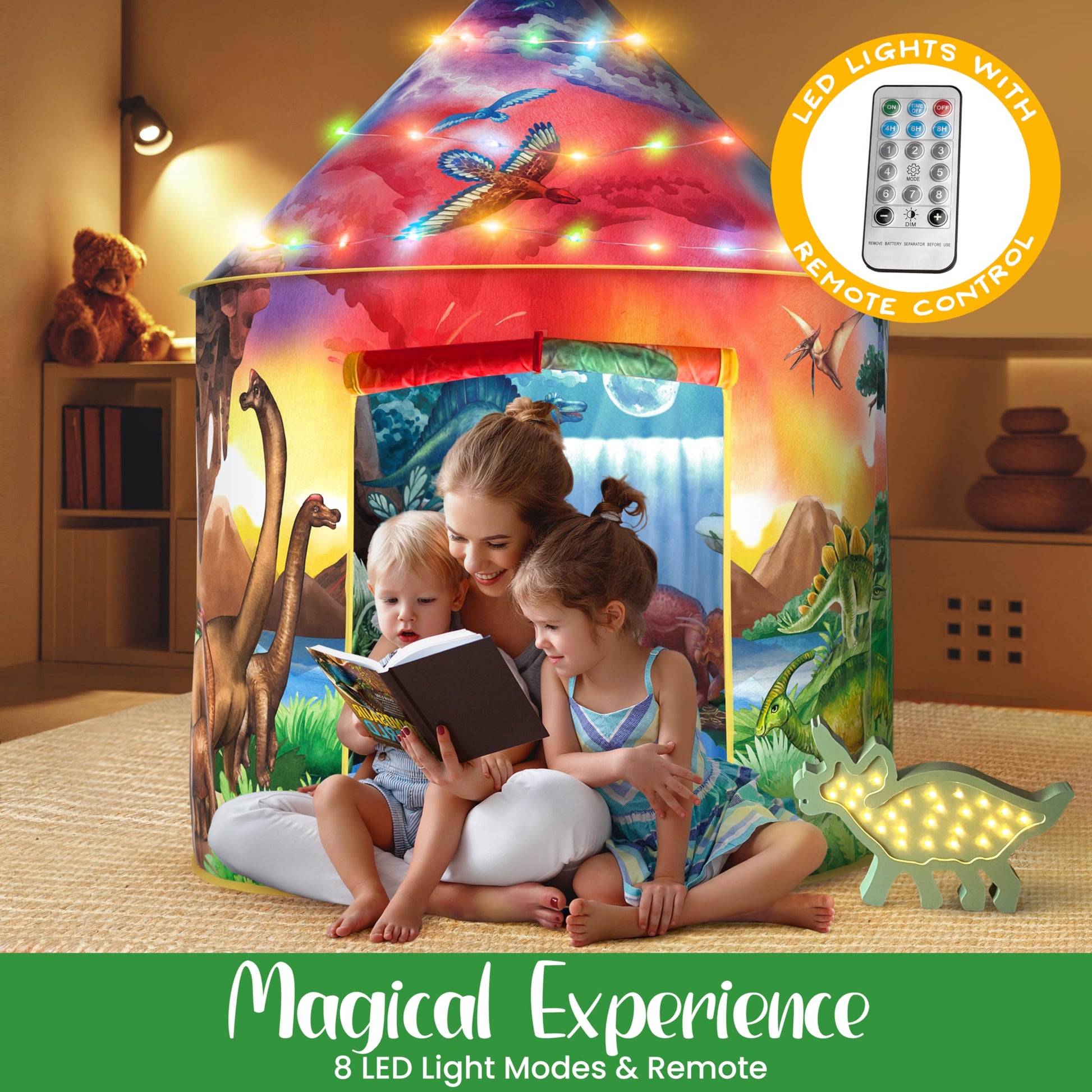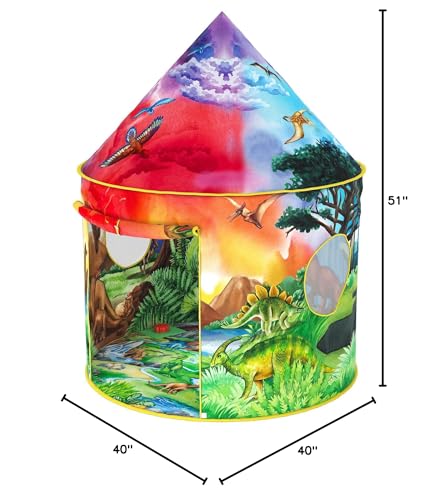- 🦕 𝐓𝐡𝐞 𝐔𝐥𝐭𝐢𝐦𝐚𝐭𝐞 𝐃𝐢𝐧𝐨 𝐓𝐞𝐧𝐭 - The vibrant artwork, spacious interior, and ROAR button makes this indoor tent an unforgettable gift for kids. 3 little adventurers can travel together to the Jurassic era! It won't be long before they're running among Velociraptors and soaring with Pterodactyls.